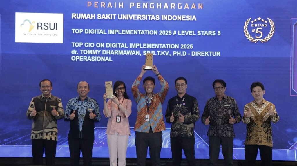 Jakarta, CoreNews.id – Rumah Sakit Universitas Indonesia (RSUI) menorehkan capaian nasional melalui raihan dua (2) penghargaan pada ajang TOP Digital Awards 2025, sebuah penghargaan terbesar di Indonesia dalam bidang implementasi inovasi teknologi informasi.