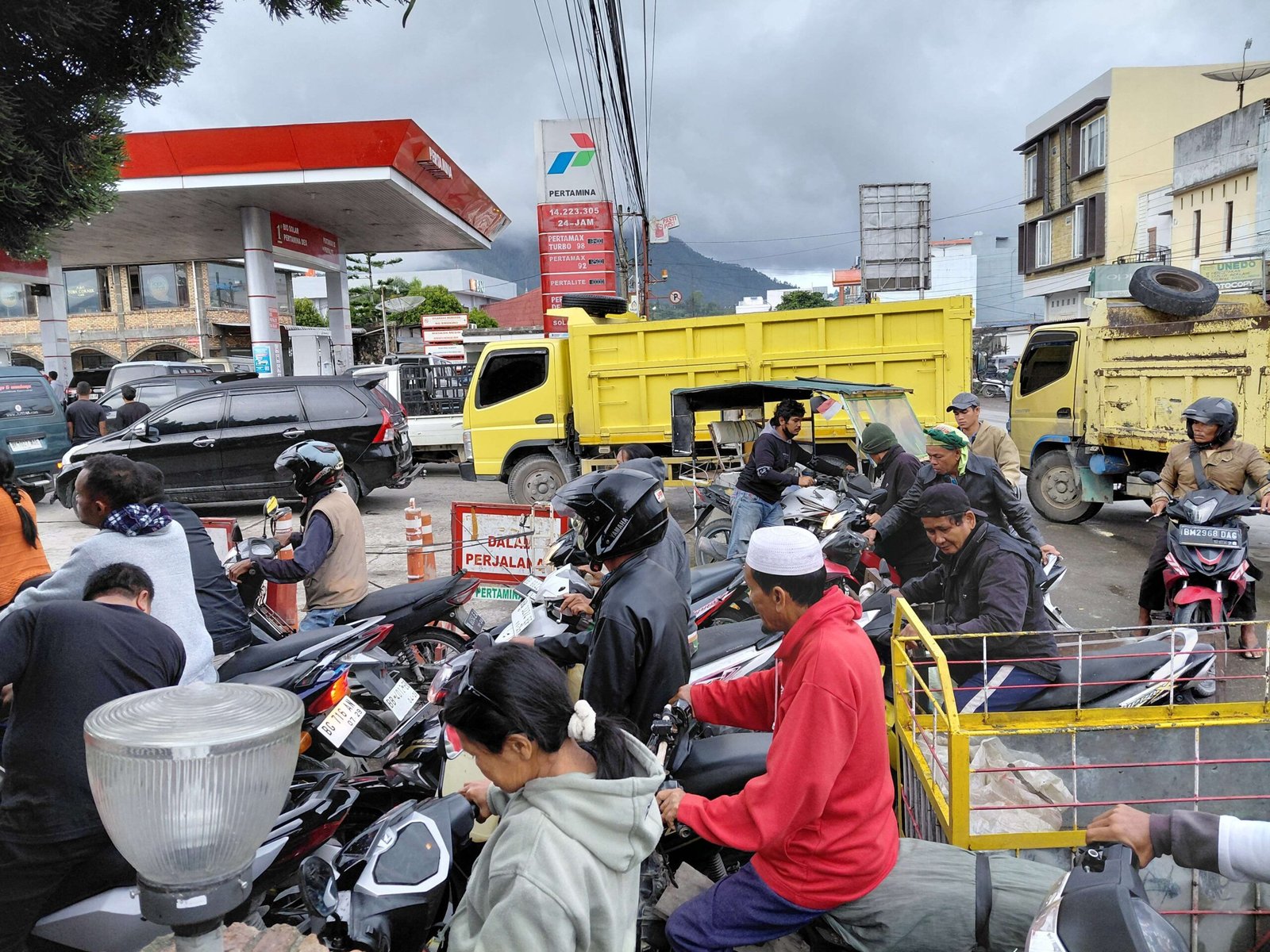 Roy, salah satu warga, mengatakan antrean panjang terjadi setiap hari di SPBU. Meski Balige tidak terdampak langsung bencana, akses jalan yang terputus akibat longsor di Adiang Koting membuat pasokan BBM tersendat. Antrean kendaraan bahkan mencapai sekitar satu kilometer dengan waktu tunggu lebih dari dua jam.