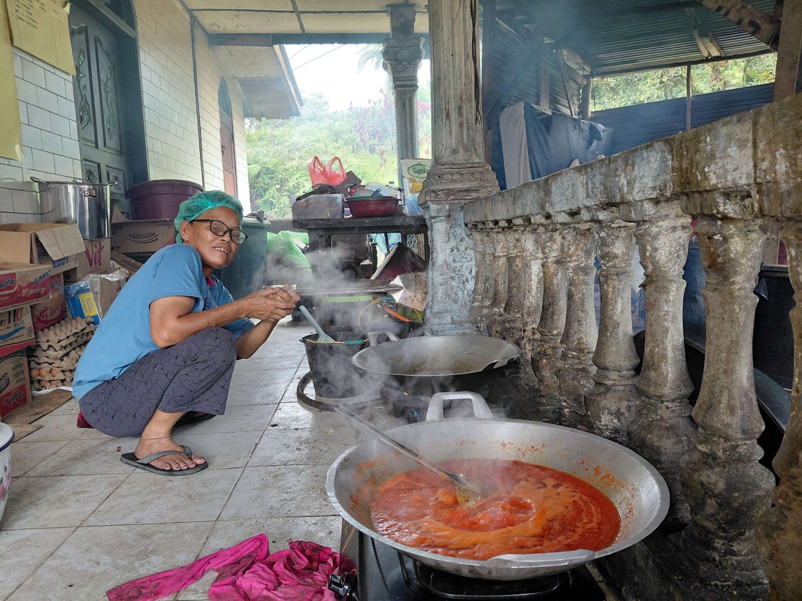 Setelah mengungsi ke posko darurat karena rumahnya tak lagi layak huni, Tumiar justru tergerak membantu sesama. Ia menjadi relawan juru masak di dapur umum sejak 26 November. Bersama relawan lain, ia menyiapkan makanan tiga kali sehari untuk hampir 250 warga.