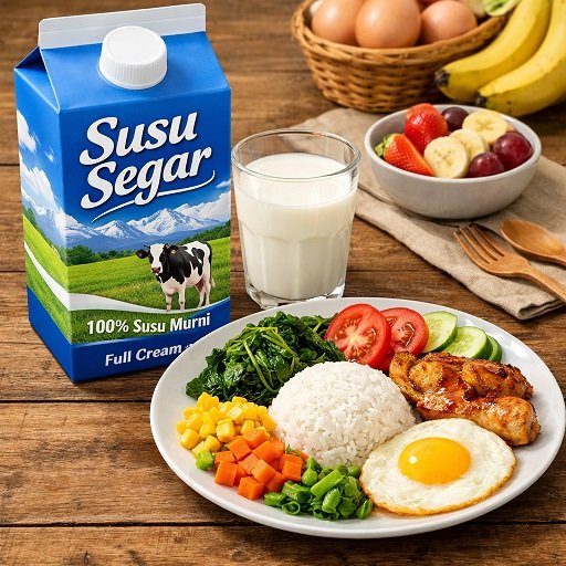Ilustrasi Susu dan Makanan Sehat dibuat oleh ChatGPT