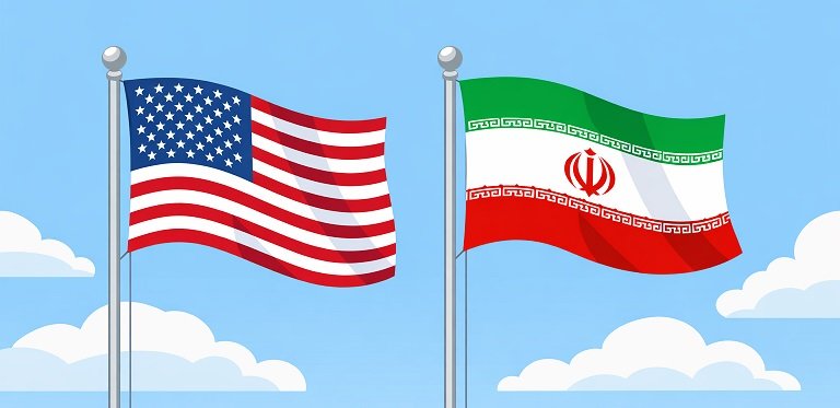 Ilustrasi Bendera AS dan Iran dibuat oleh ChatGPT